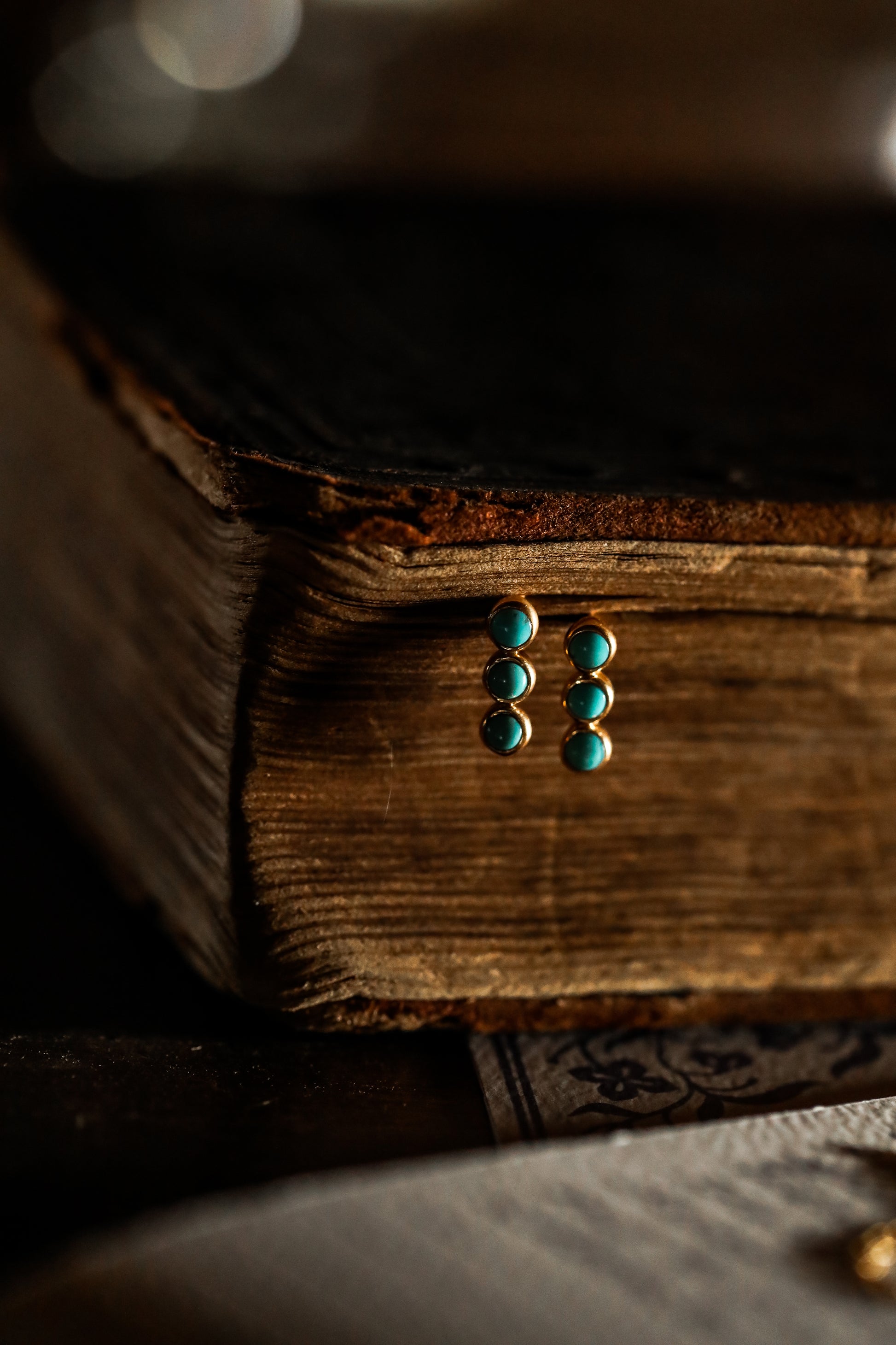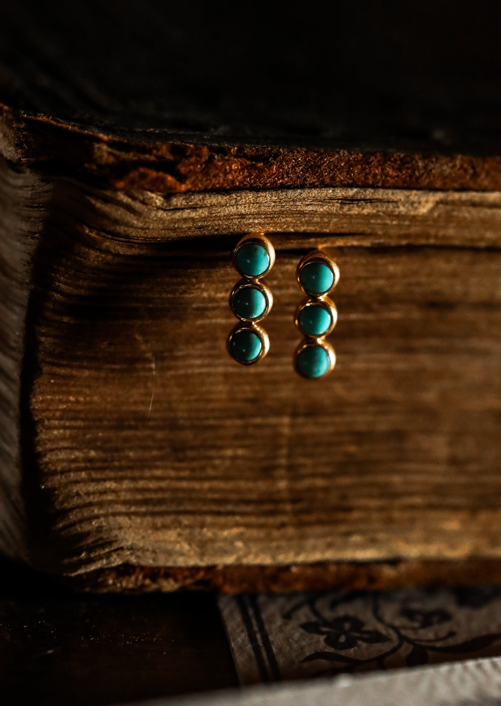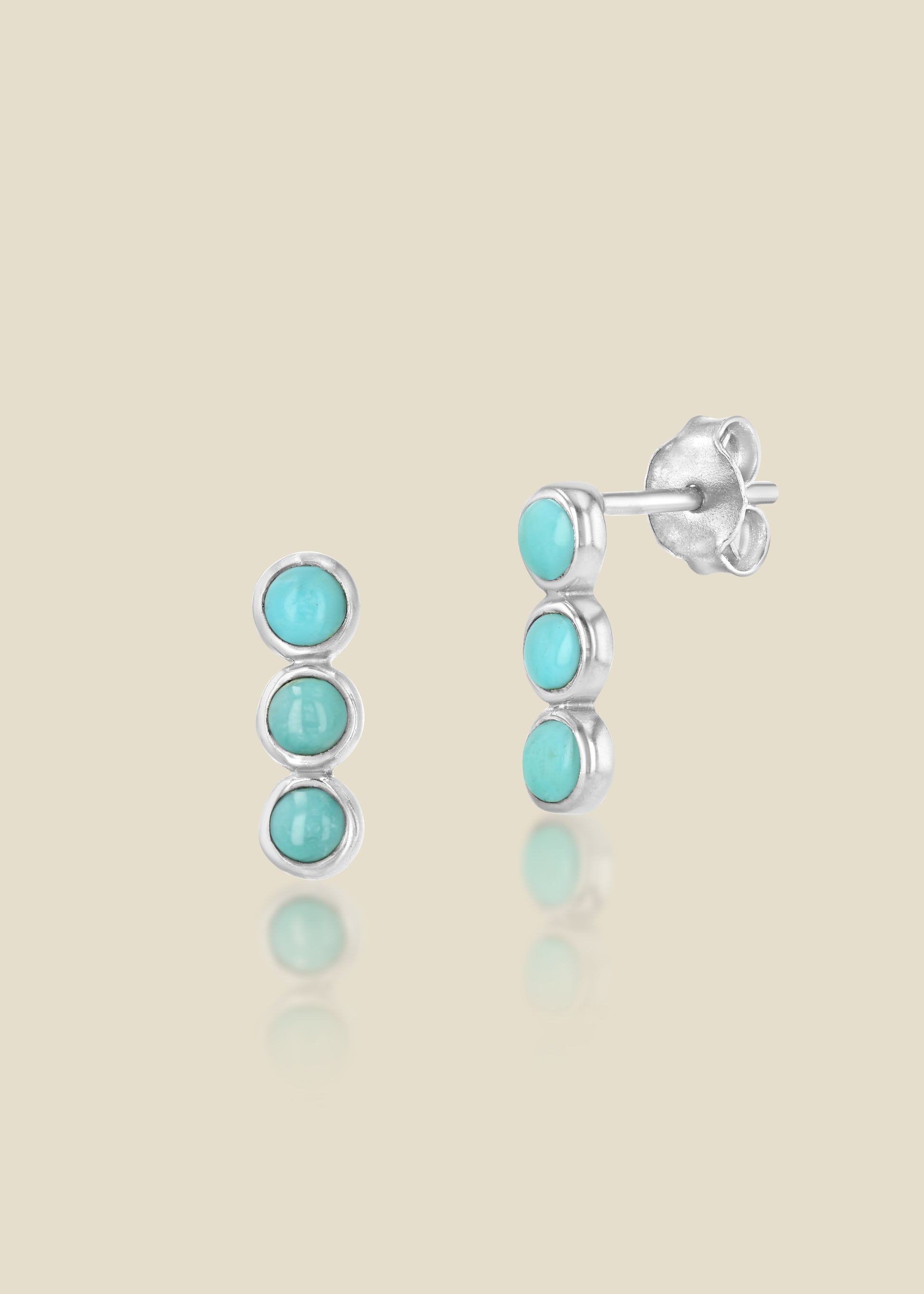 Upgrade your jewelry collection with our beautiful From the Post Turquoise 3 stud earrings. Made with genuine turquoise and coated in 14k plated gold, and 925 sterling silver each stone measures 3 mm for a dainty and elegant look. Perfect for adding a touch of sophistication to any outfit.